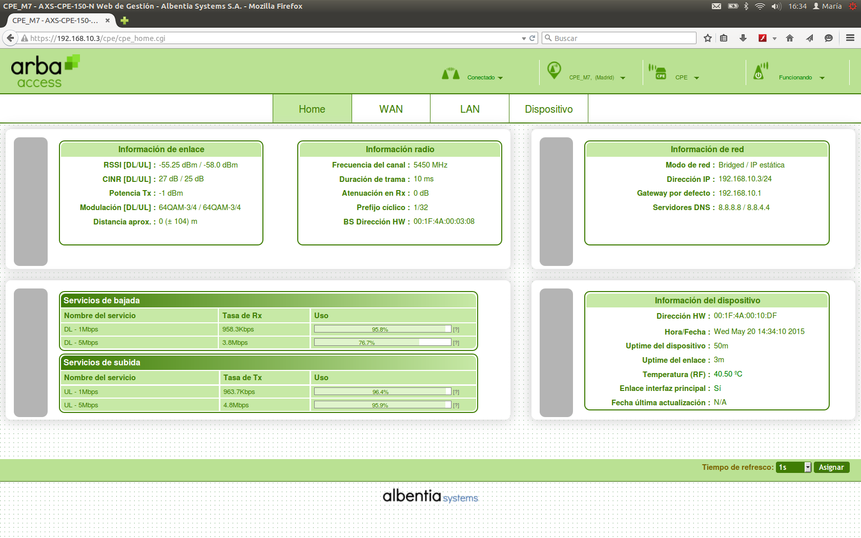 - Hemos mejorado la apariencia de la web de gestión del CPE para mejorar la navegación y hacerla más sencilla.