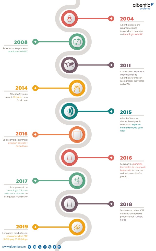 Si aún no nos conoces, deberemos comenzar con las presentaciones. Somos Albentia Systems, fabricantes de equipos y sistemas de telecomunicaciones con tecnología aerDOCSIS. Nuestra empresa se fundó en el año 2004 y llevamos más de 10 años satisfaciendo las necesidades de nuestros clientes. Esta es una pequeña parte de nuestra historia.