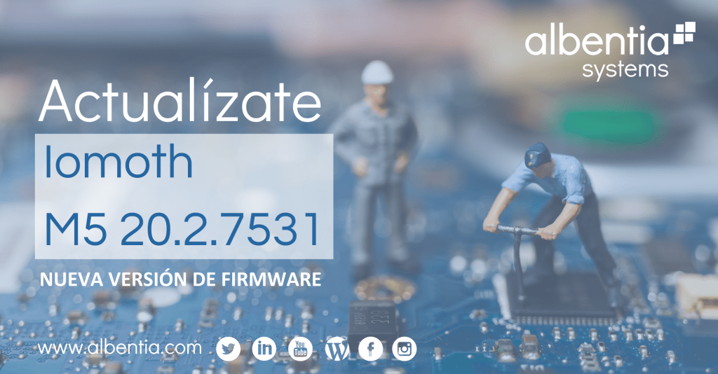 🆕 Ya está disponible la nueva actualización de firmware IomothM5 20.2.7531 para algunos de los equipos Albentia Systems. Entra en http://www.albentia.com/firmware, averigua si tu equipo es uno de ellos y actualiza para asegurar el funcionamiento óptimo de los equipos en cualquier escenario.